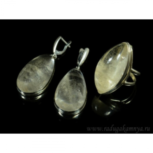 Кольцо и серьги горный хрусталь