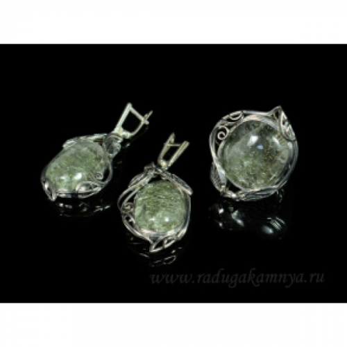 Кольцо и серьги из горного хрусталя, овал 25х14мм швензы посеребрение р-р 18