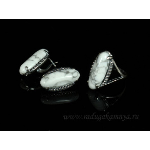 Кольцо и серьги из каулита (имитация кахолонга), овал 25х10