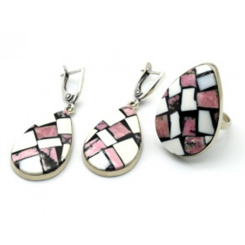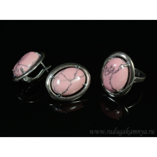 Кольцо и серьги с кахолонгом (имитация), цвет розовый