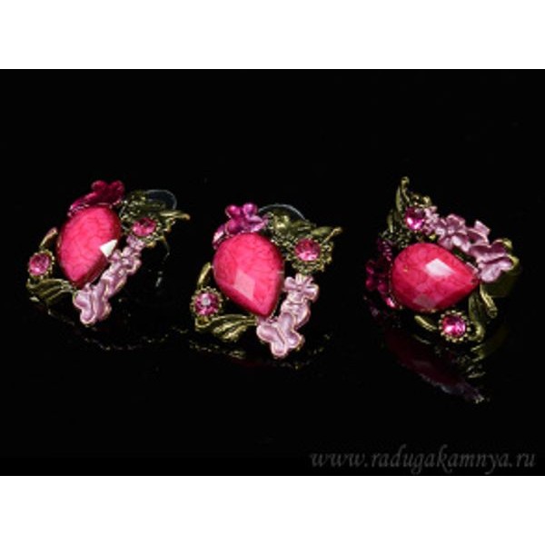Кольцо и серьги с муранским стеклом цвет розовый (иск.)