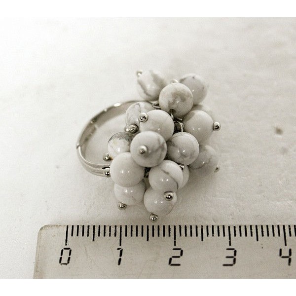 Кольцо из каулита (нат., имитация кахолонга) "гроздь", шарик 6мм