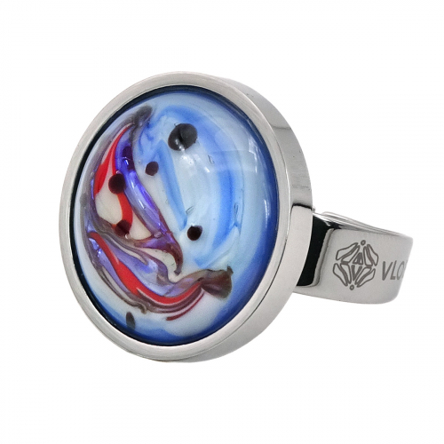 Кольцо изготовлено из муранского стекла и гипоаллергенной ювелирной стали, что очень важно для людей с чувствительной кожей. Металл не темнеет и не подвергается воздействиям окружающей среды, надолго обеспечивая красивый внешний вид изделия. Диаметр стеклянного элемента - 2 см. Кольцо безразмерное, регулируется с 16 до 19 размера. Вес - 8 гр.