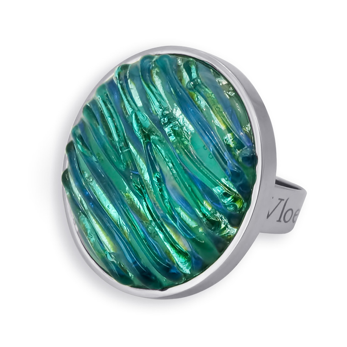 Кольцо изготовлено из муранского стекла и гипоаллергенной ювелирной стали, что очень важно для людей с чувствительной кожей. Металл не темнеет и не подвергается воздействиям окружающей среды, надолго обеспечивая красивый внешний вид изделия. Диаметр стеклянного элемента - 2,5 см. Кольцо безразмерное, регулируется с 16 до 19 размера. Вес - 12 гр.