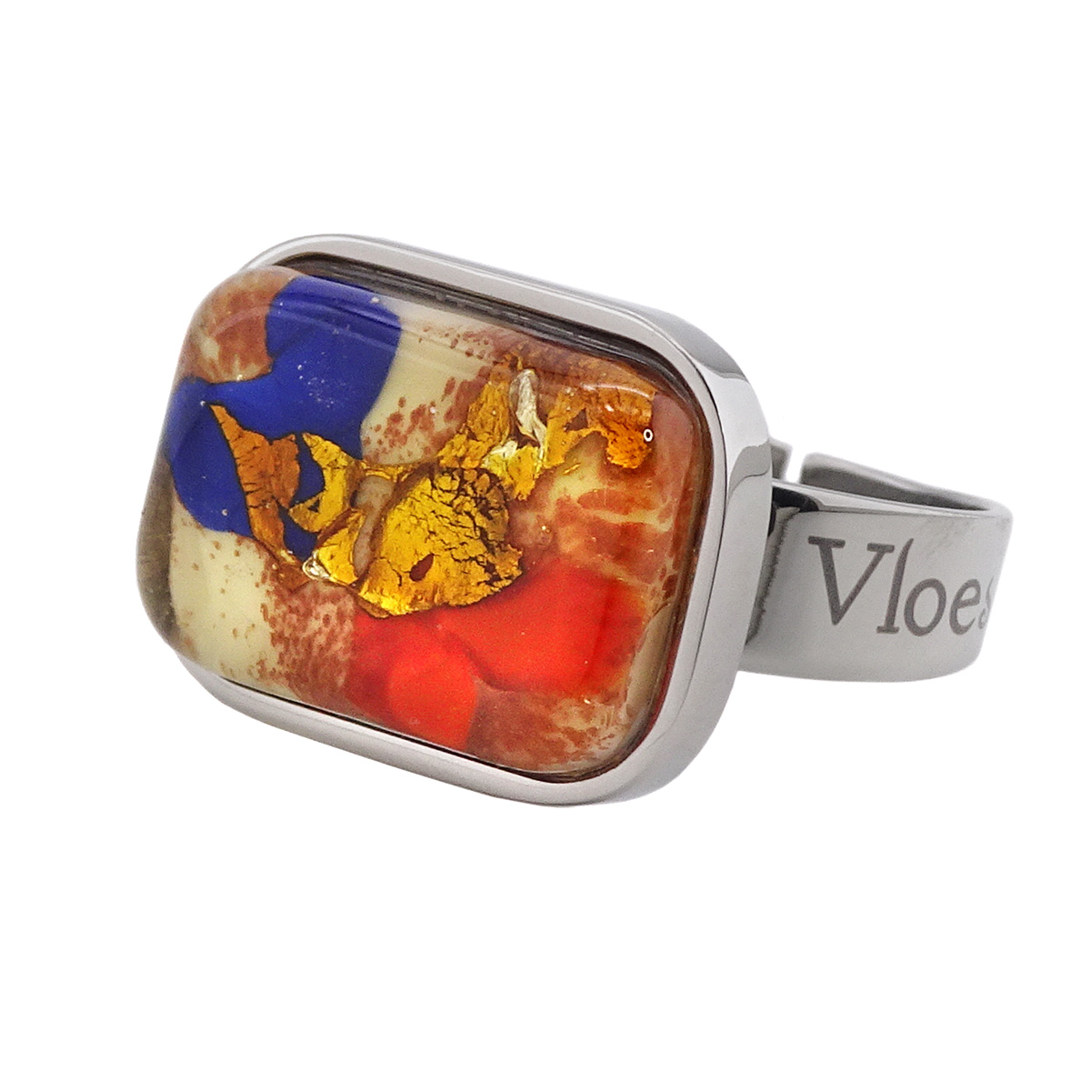 Кольцо изготовлено из муранского стекла и гипоаллергенной ювелирной стали, что очень важно для людей с чувствительной кожей. Металл не темнеет и не подвергается воздействиям окружающей среды, надолго обеспечивая красивый внешний вид изделия. Размер стеклянного элемента - 2х1,5 см. Кольцо безразмерное, регулируется с 16 до 19 размера. Вес - 7 гр.