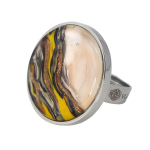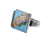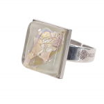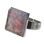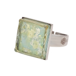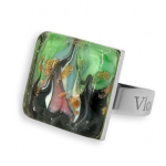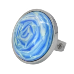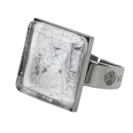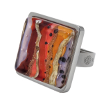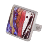 Кольцо изготовлено из муранского стекла и гипоаллергенной ювелирной стали, что очень важно для людей с чувствительной кожей. Металл не темнеет и не подвергается воздействиям окружающей среды, надолго обеспечивая красивый внешний вид изделия. Размер стеклянного элемента - 2,2x2,2 см. Кольцо безразмерное, регулируется с 16 до 19 размера. Вес - 15 гр.