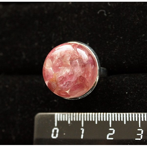 Кольцо из турмалина розового (кабашон-мозаика), круг 18мм, безразмерное