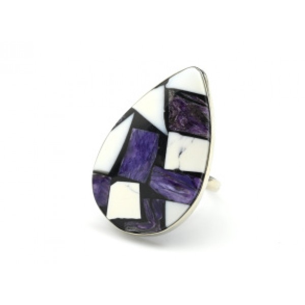 Кольцо "Мозаика" с чароитом и кахолонгом 22*33мм.