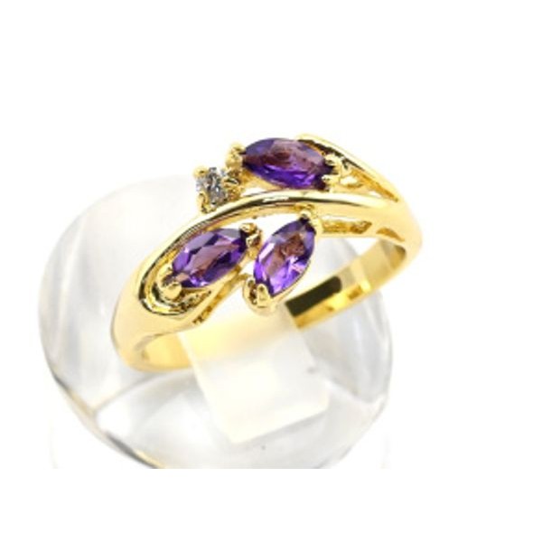 Кольцо позолота с камнями аметиста и стразами "Рис"