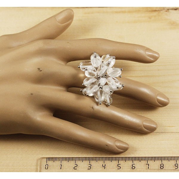 Кольцо с горным хрусталем "гроздь", овалы 5-8мм