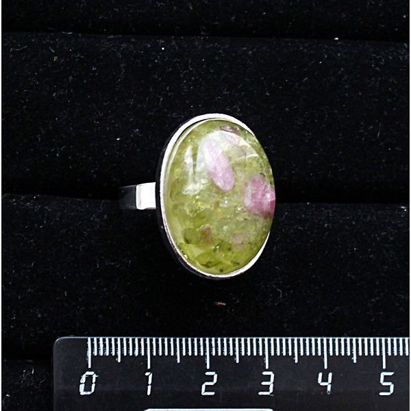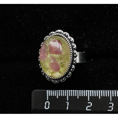 Кольцо с хризолитом и турмалином (кабошон-мозаика), овал 25х18мм, безразмерное (литая оправа)