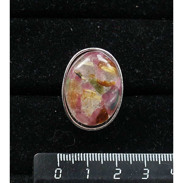 Кольцо с турмалином и волосатиком (кабашон-мозаика), овал 25х18мм, безразмерное (литая оправа)