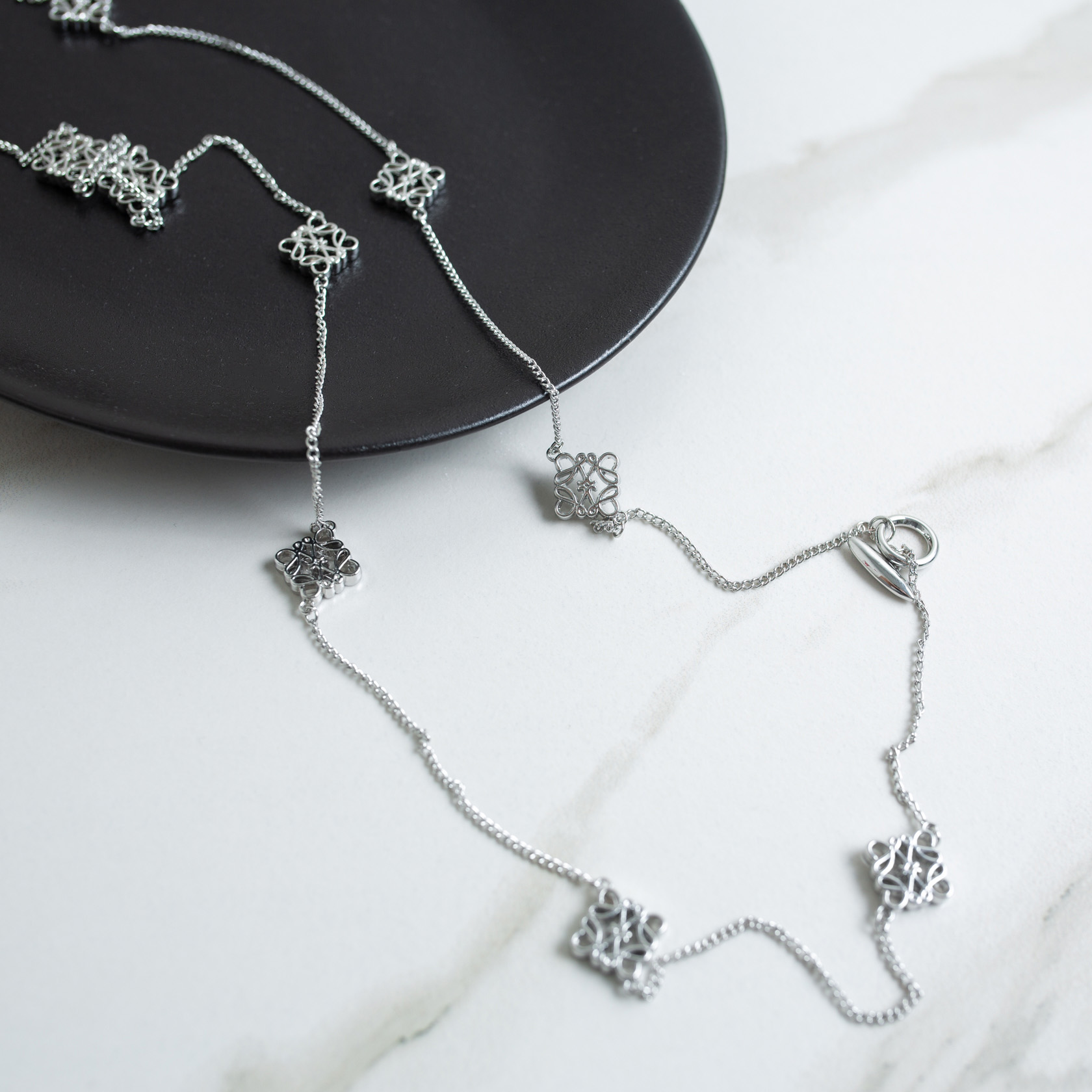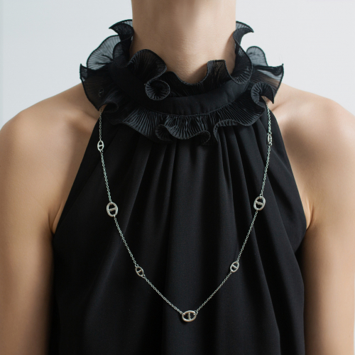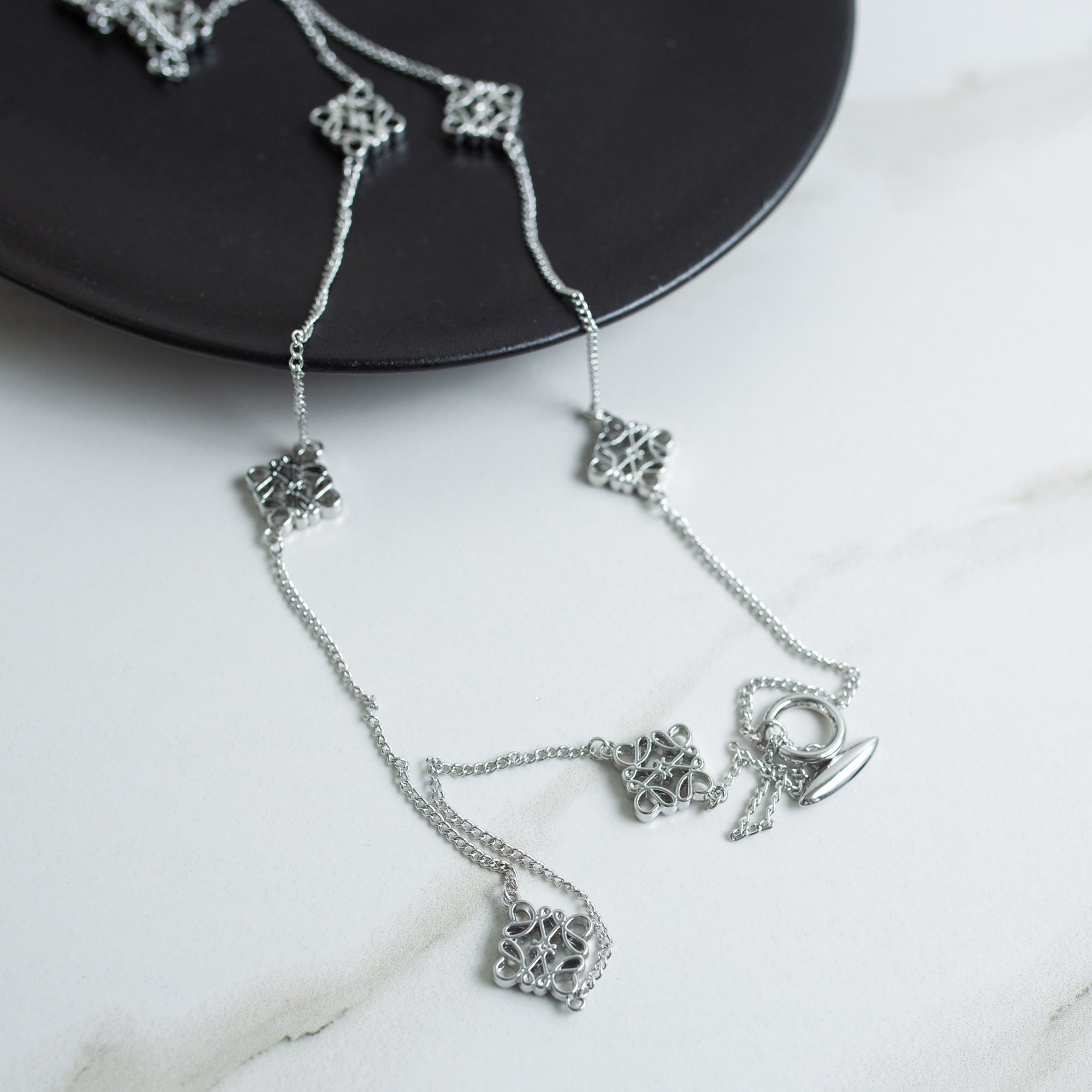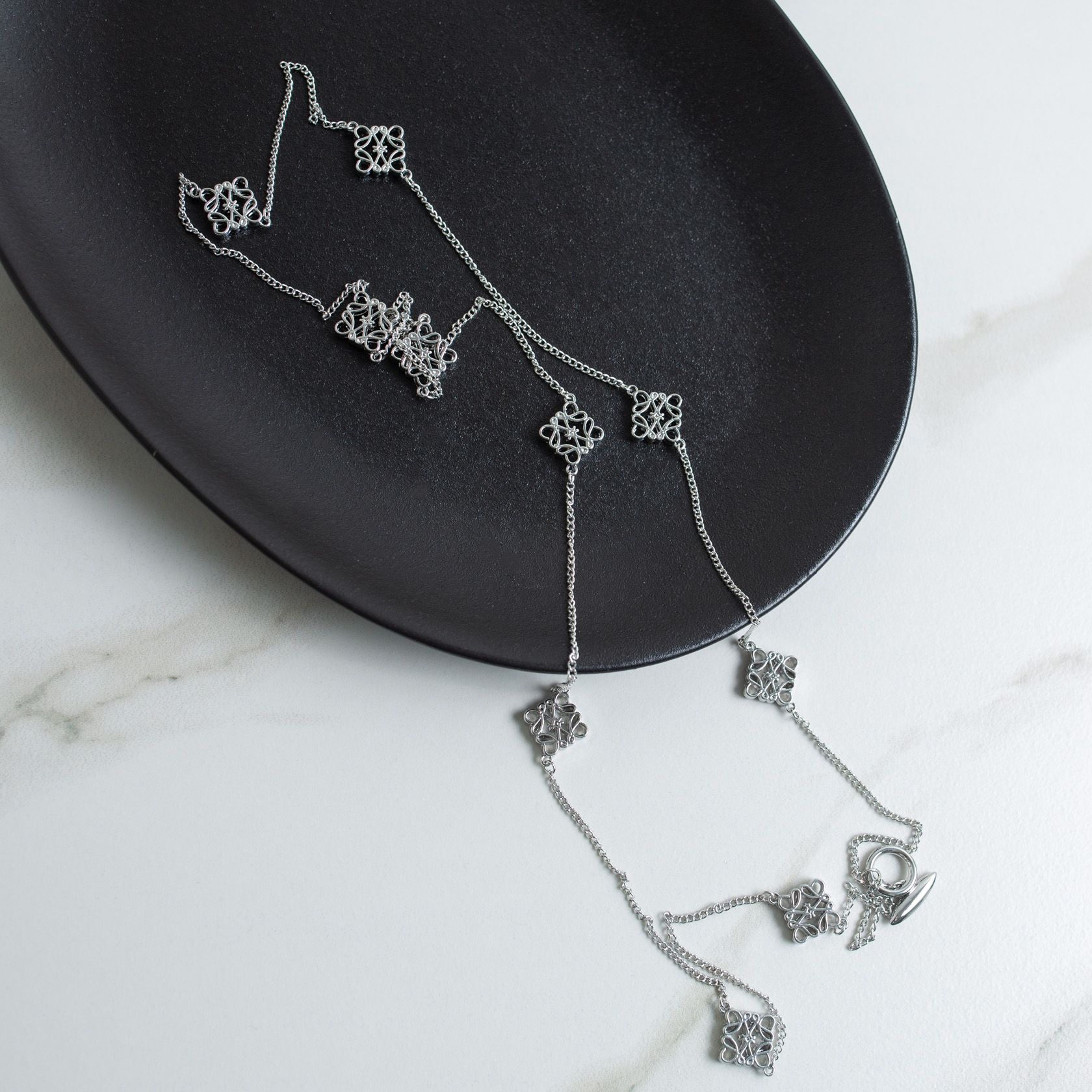 Элементы, танцующие на тонкой цепочке длинного колье.