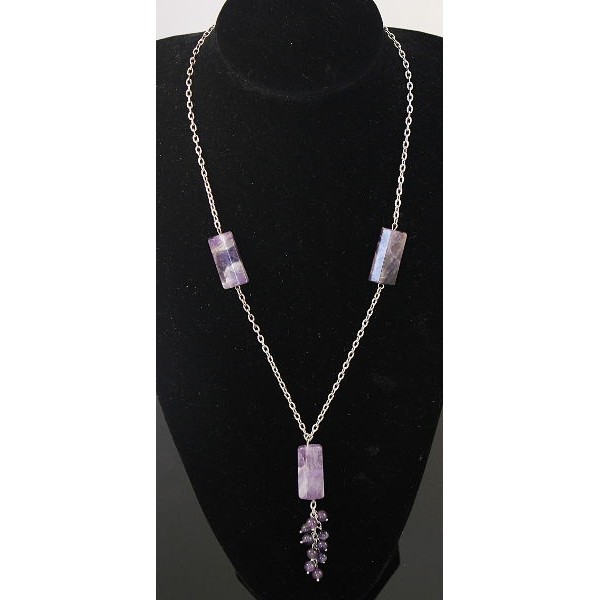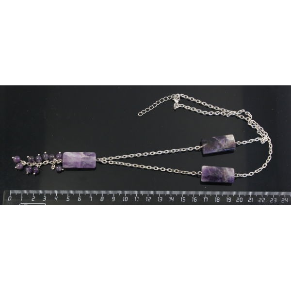 Колье-галстук на цепочке из аметиста, 3 прямоугольника + шарик 6мм