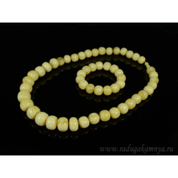 Колье и браслет из янтаря кукуруза 15*12мм-20*15мм молочный, 54см