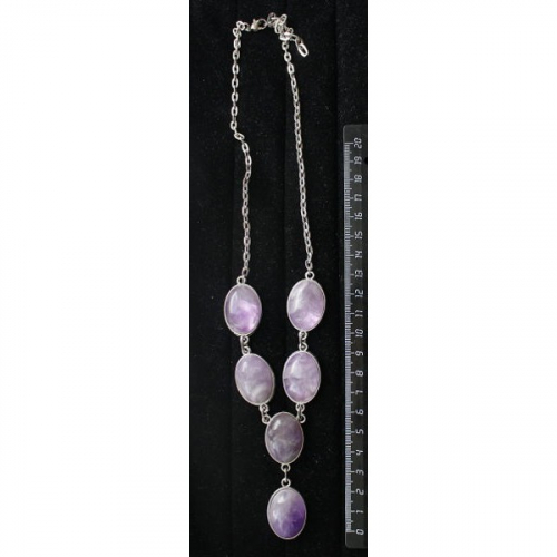 Колье из аметиста на цепочке,5 камней, круг 18мм