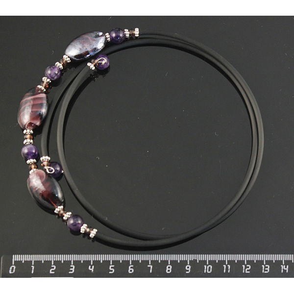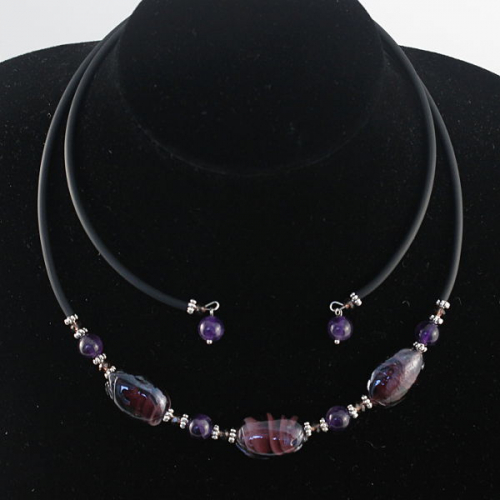 Колье из аметиста (шарик 8мм) и муранского стекла, на струнке