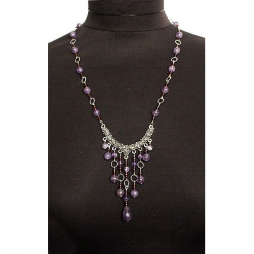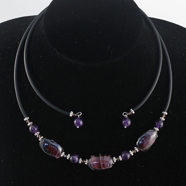 Колье из аметиста (шарик 8мм) и муранского стекла, на струнке
