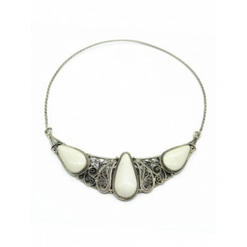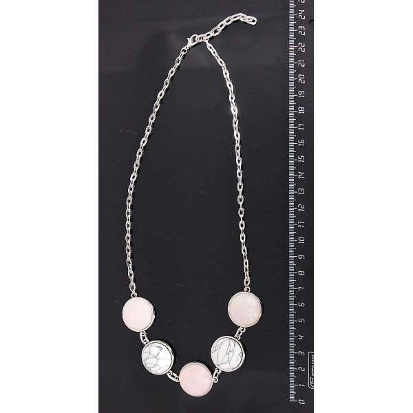 Колье из кварца розового и каулита, на цепочке, 5 камней, круг 20мм