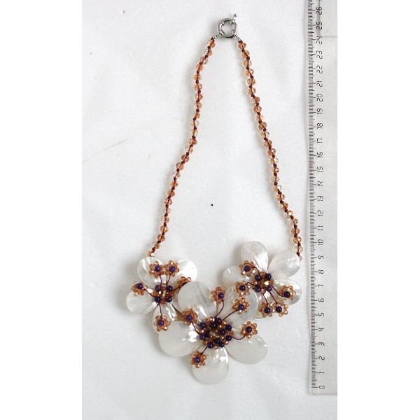 Колье из перламутра, аметиста и хрусталь 3 цветка