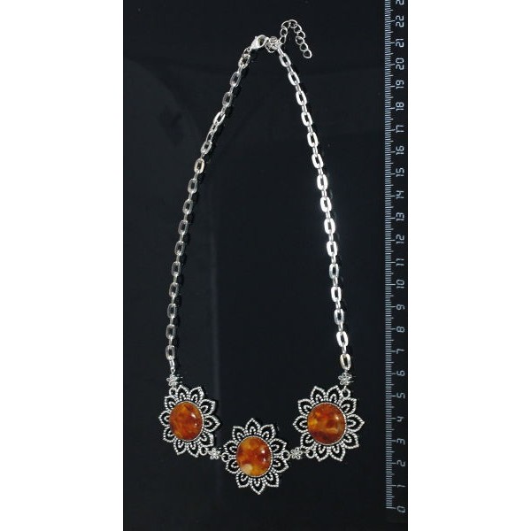 Колье из янтаря (нат., кабошон-мозаика), светлый, "3 цветка" на цепочке, 48-50см, круг 18мм