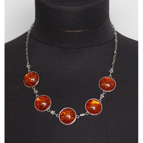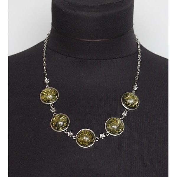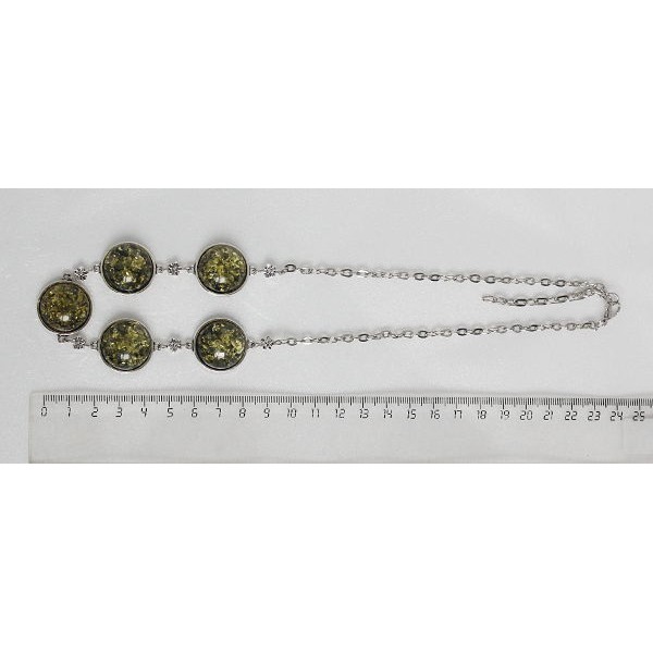 Колье из янтаря (переплавленый) на цепочке, цвет зеленый, круг 20мм