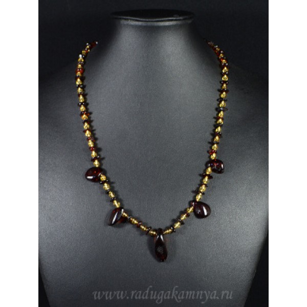 Колье из янтаря с бисером 5 висюлек галтовка коньячный, 13гр, 51см