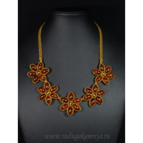 Колье из янтаря с бисером 5 висюлек галтовка молочный, 15гр, 50см