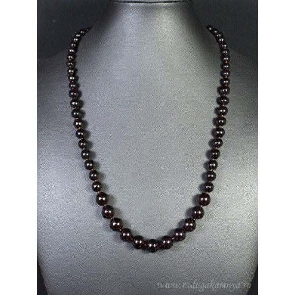 Колье из янтаря шарик 5-10мм вишня, 54см