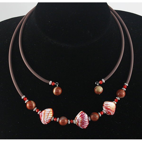 Колье из яшмы красной (шарик 10мм) и муранского стекла, на струнке