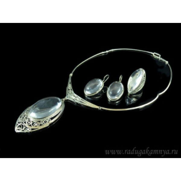 Колье, Кольцо и серьги горный хрусталь, 49см р-р 17.5
