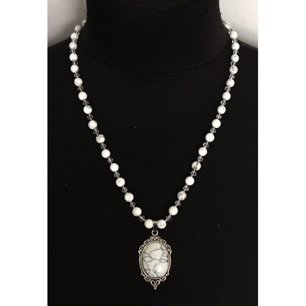 Колье-кулон из камня каулит (имитация кахолонга), овал 25х18мм, оправа медальон