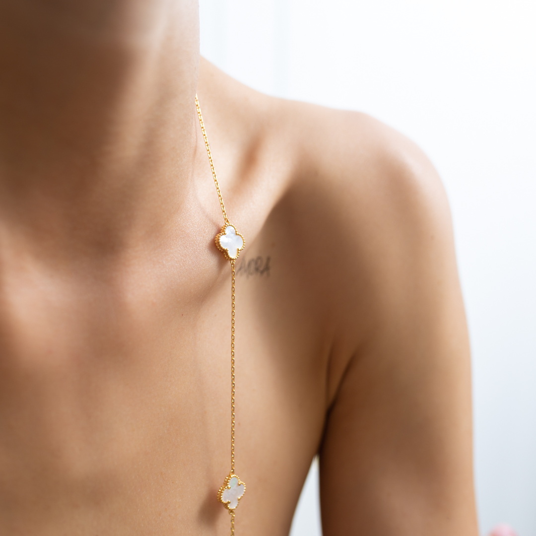 Ювелирный сплав, позолота, натуральный перламутр с двух сторон "клевера".
