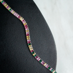 Длина 105 см, без регулировки. Длина позволяет носить колье в 1 или 2 оборота.