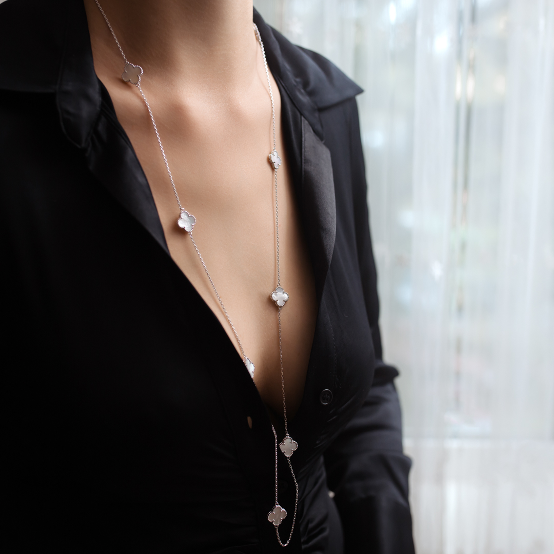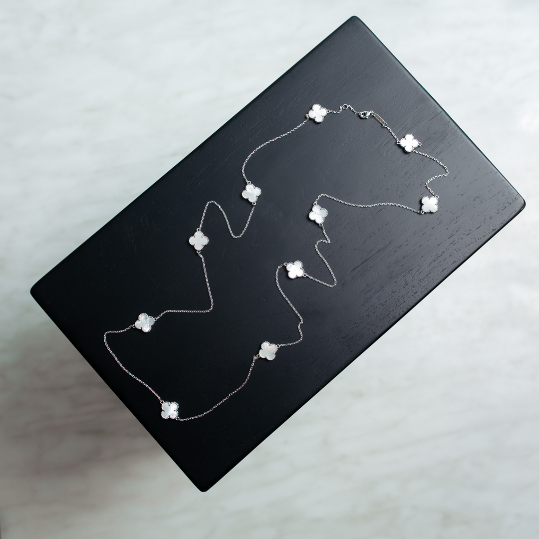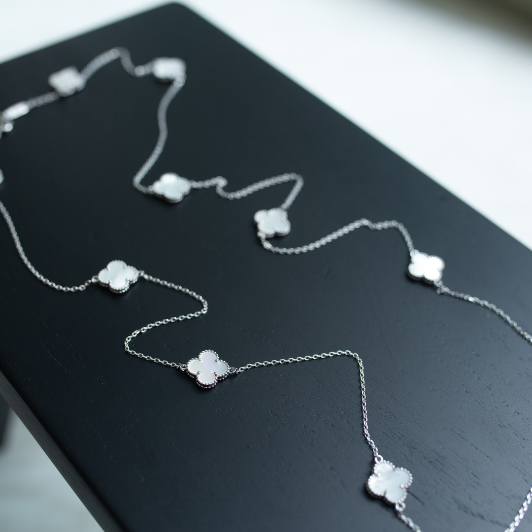 Ювелирный сплав, родиевое покрытие, натуральный перламутр с двух сторон "клевера".