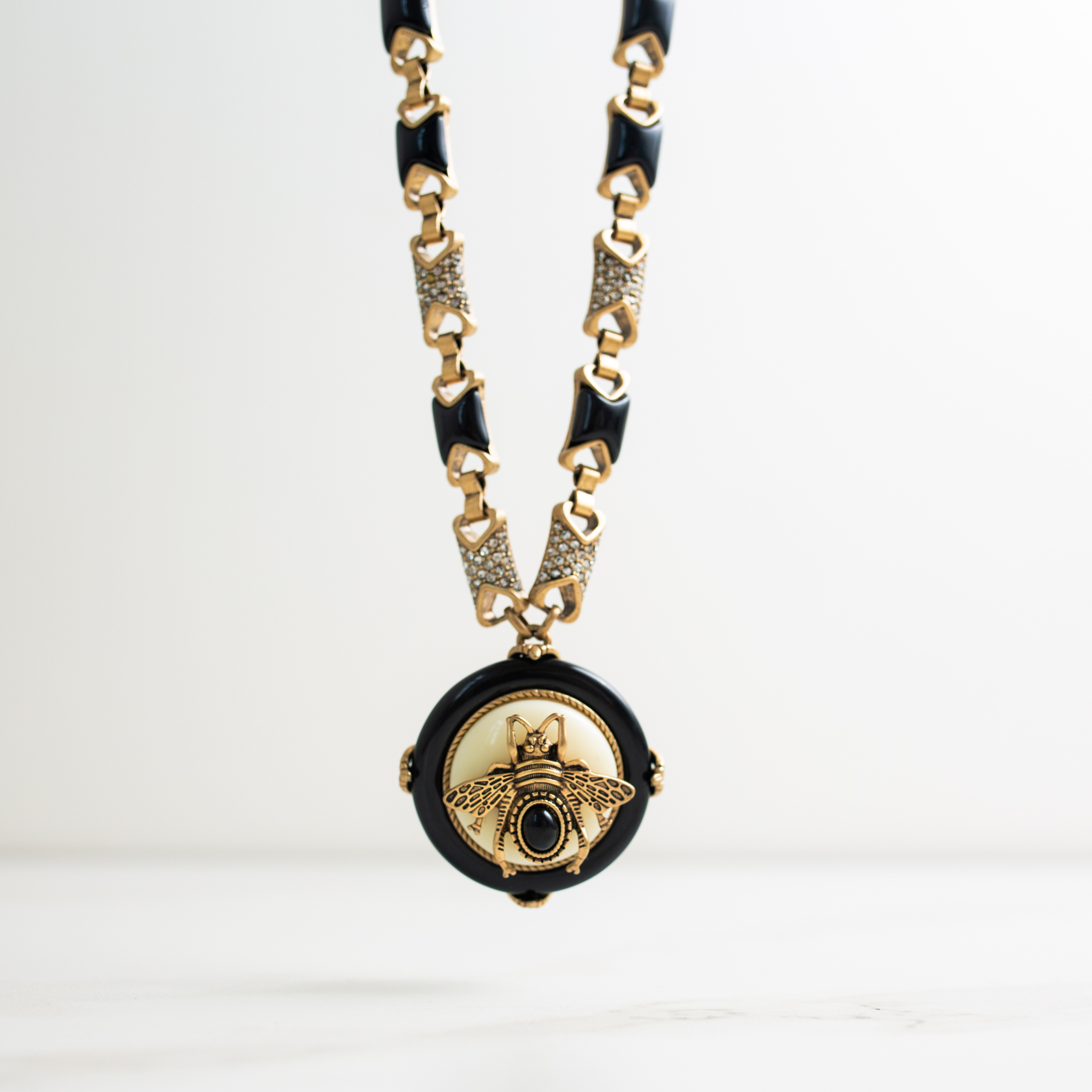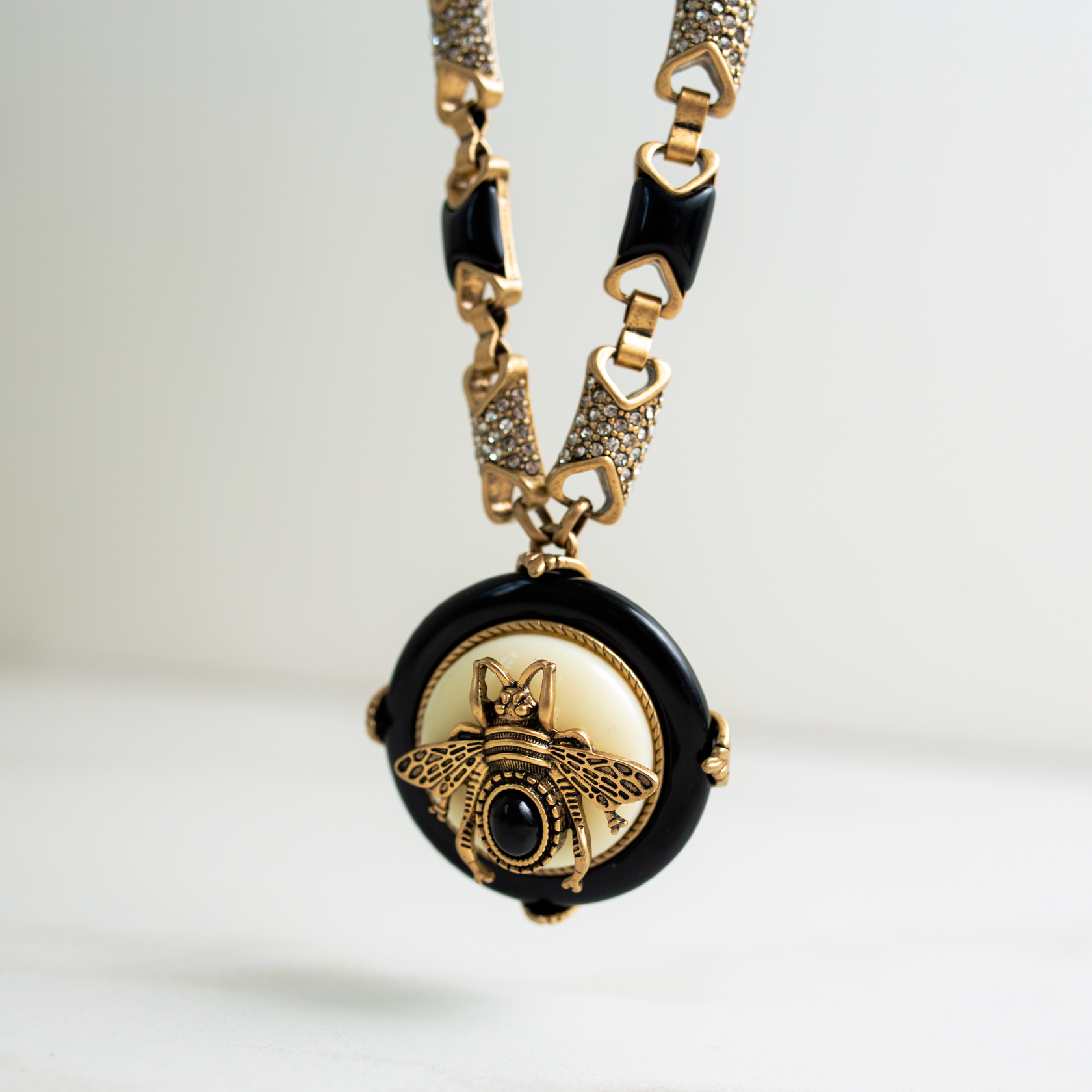 Ювелирный сплав, золочение, черный оникс, кахолонг, кристаллы.