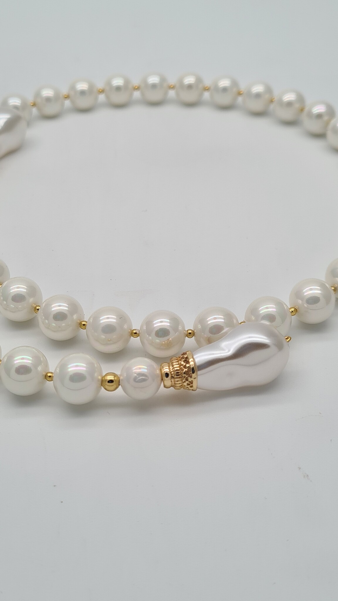 Размер: Длина колье 50 см. Жемчуг Майорка 10 мм, 20*15 мм.