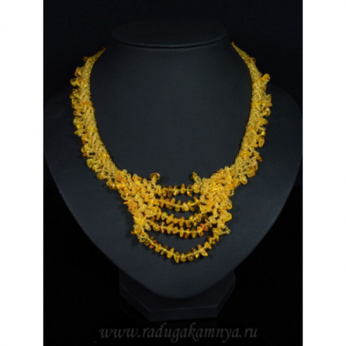 Колье с янтарем и бисером галтовка жгут коньячный, 45см