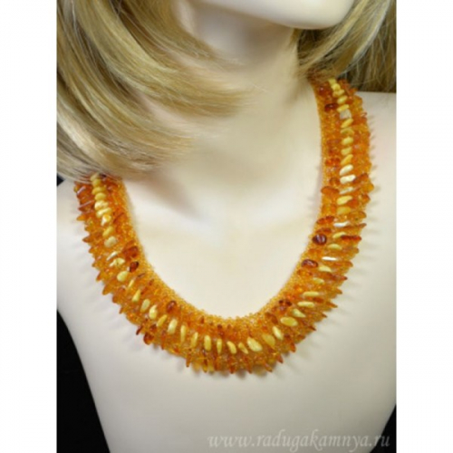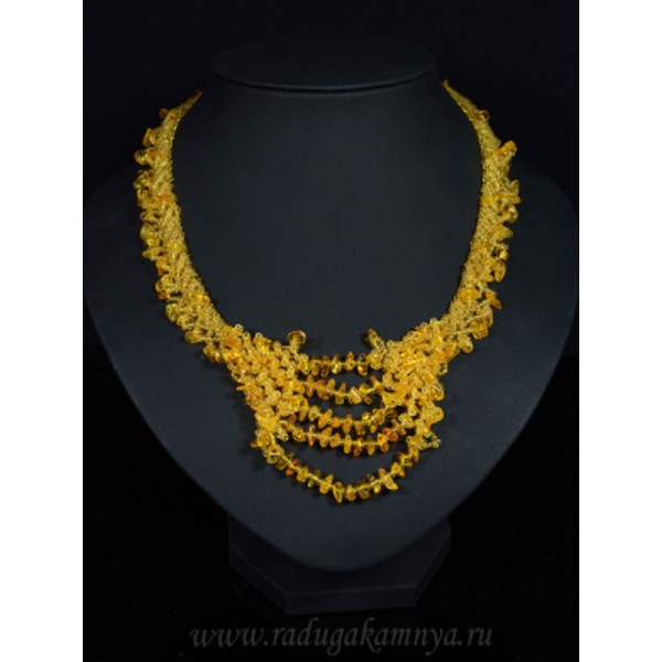 Колье с янтарем и бисером "паутинка" медовый, 46см
