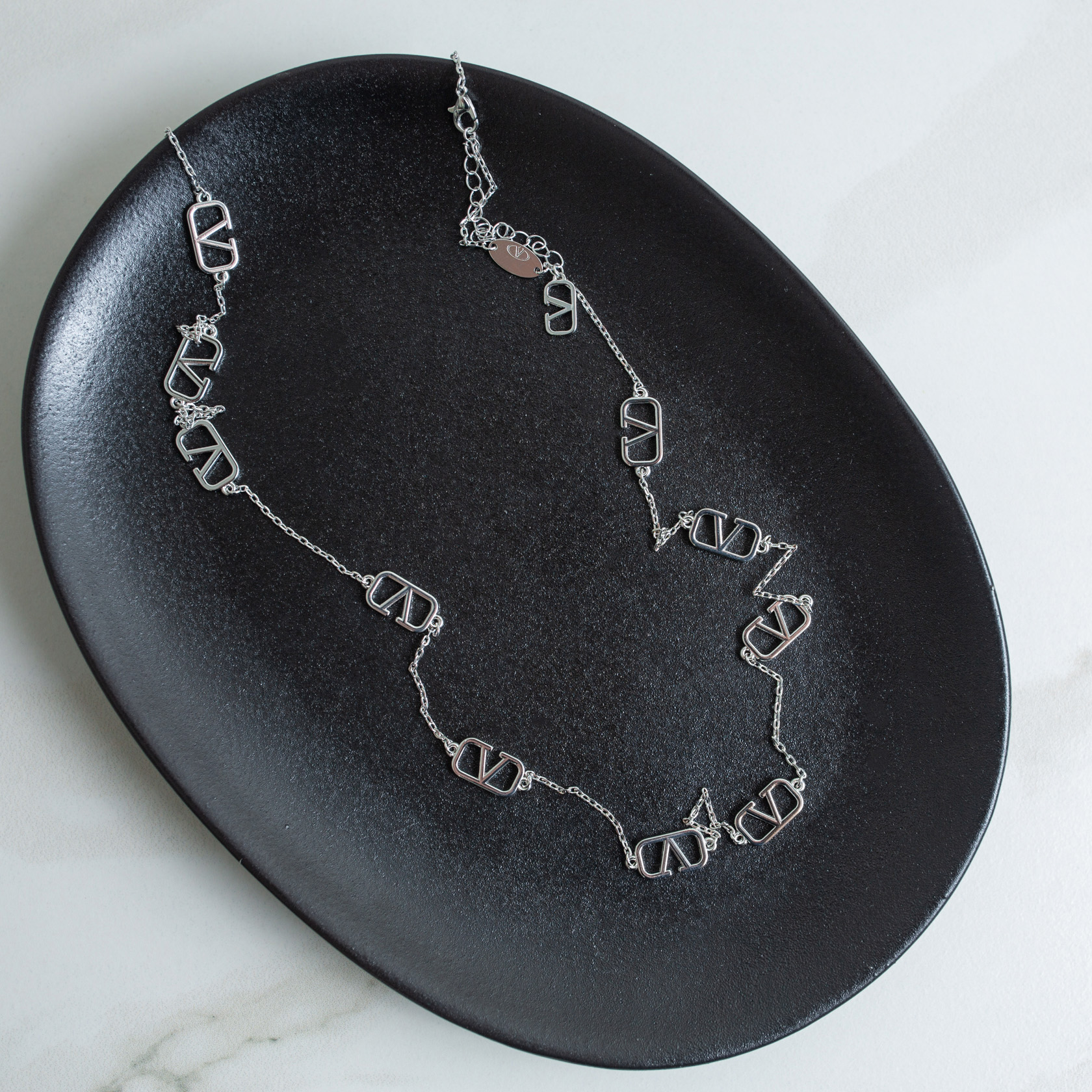 Элементы, танцующие на тонкой цепочке длинного колье.