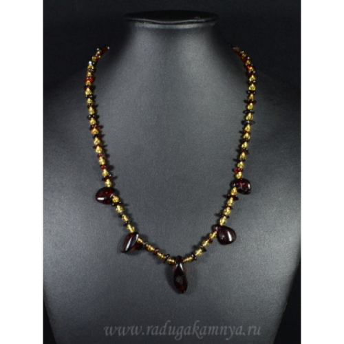 Колье янтарное капельки 12*33мм, шарик 6мм коьячный, 45см
