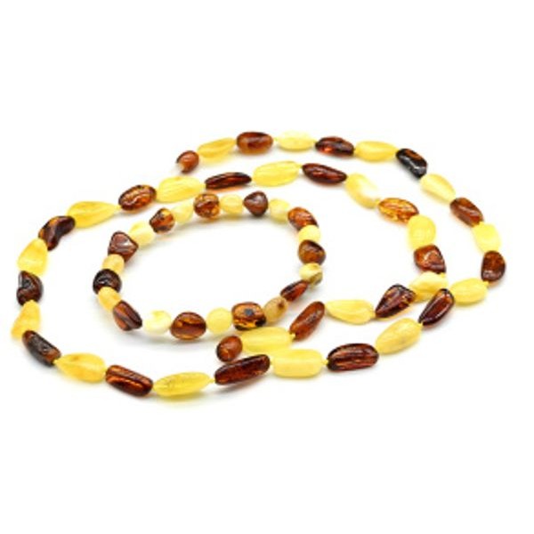 Комплект из янтаря бусы и браслет галтовка 9*13мм молочный, коньячный, 60см