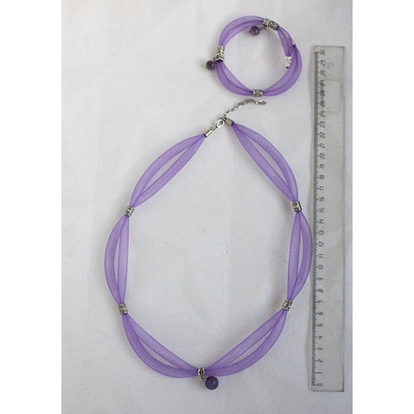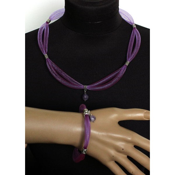 Комплект: колье и браслет из аметиста на сетке, цвет фиолетовый, шарик 8мм и10мм