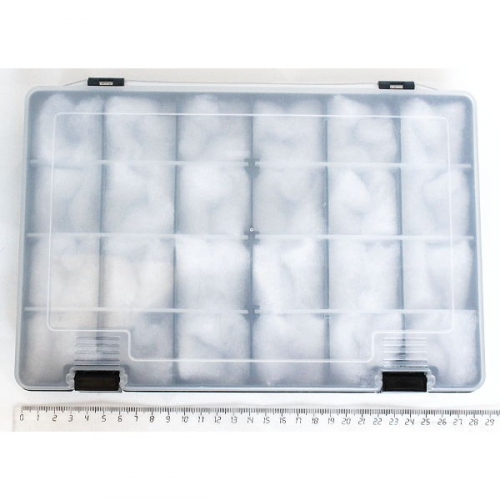 Коробка (кейс) для коллекции минералов, 24 ячейки, 27х19см, ячейка 40мм, пластик+синтепон, прозрачная крышка