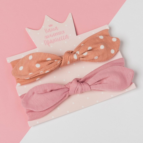 Повязки на голову для девочки «Крошка Я. Листочки. Горошек», 2 шт., размер 46-48, оранжевая, розовая
