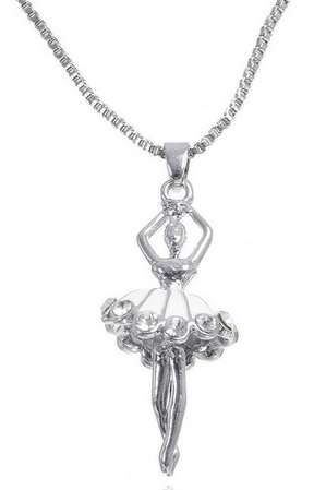 Кулон "Балерина" в юбке, цвет белый в серебре, 45 см