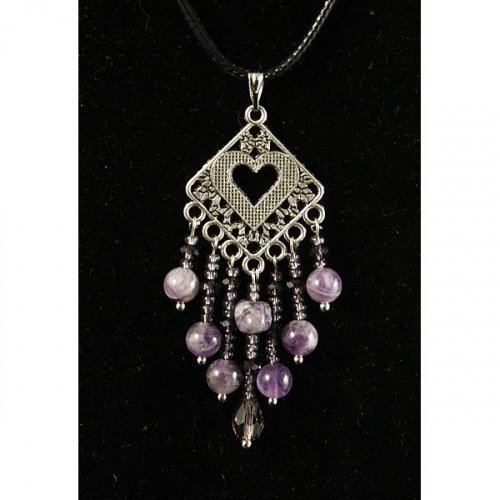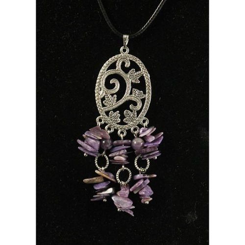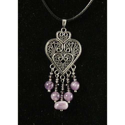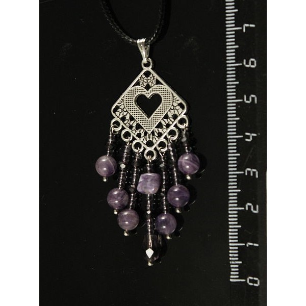 Кулон чароит (галтовка), аметист (шарик 6мм), коннектор "сердце в ромбе"