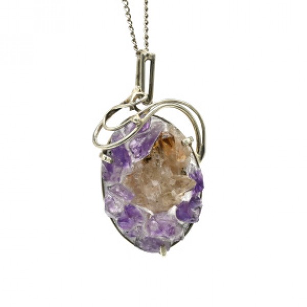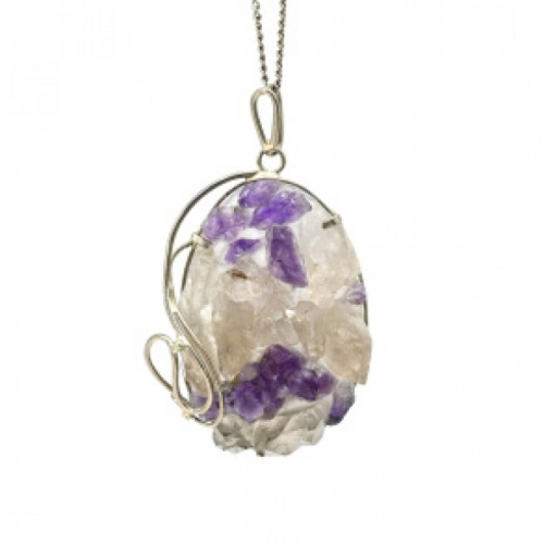 Кулон горный хрусталь с аметистом 29*43мм