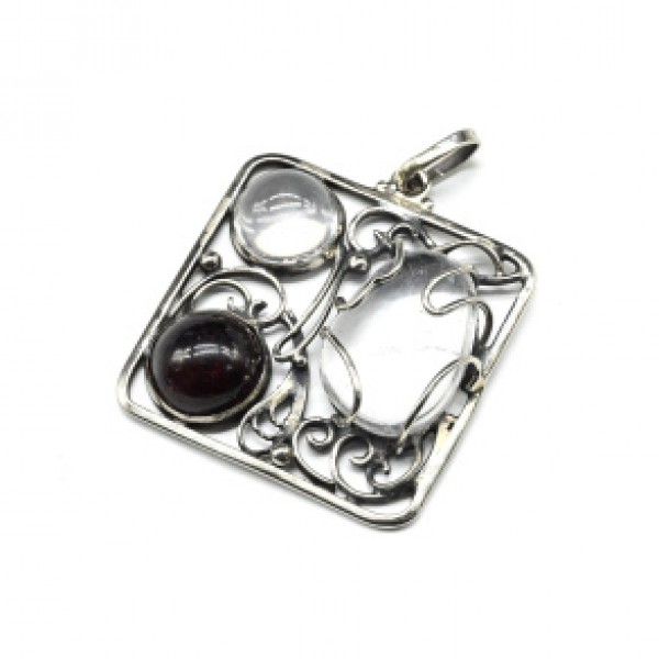 Кулон горный хрусталь с гранатом 31*31мм