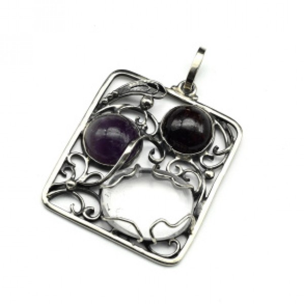 Кулон горный хрусталь с гранатом и аметистом 31*34мм.
